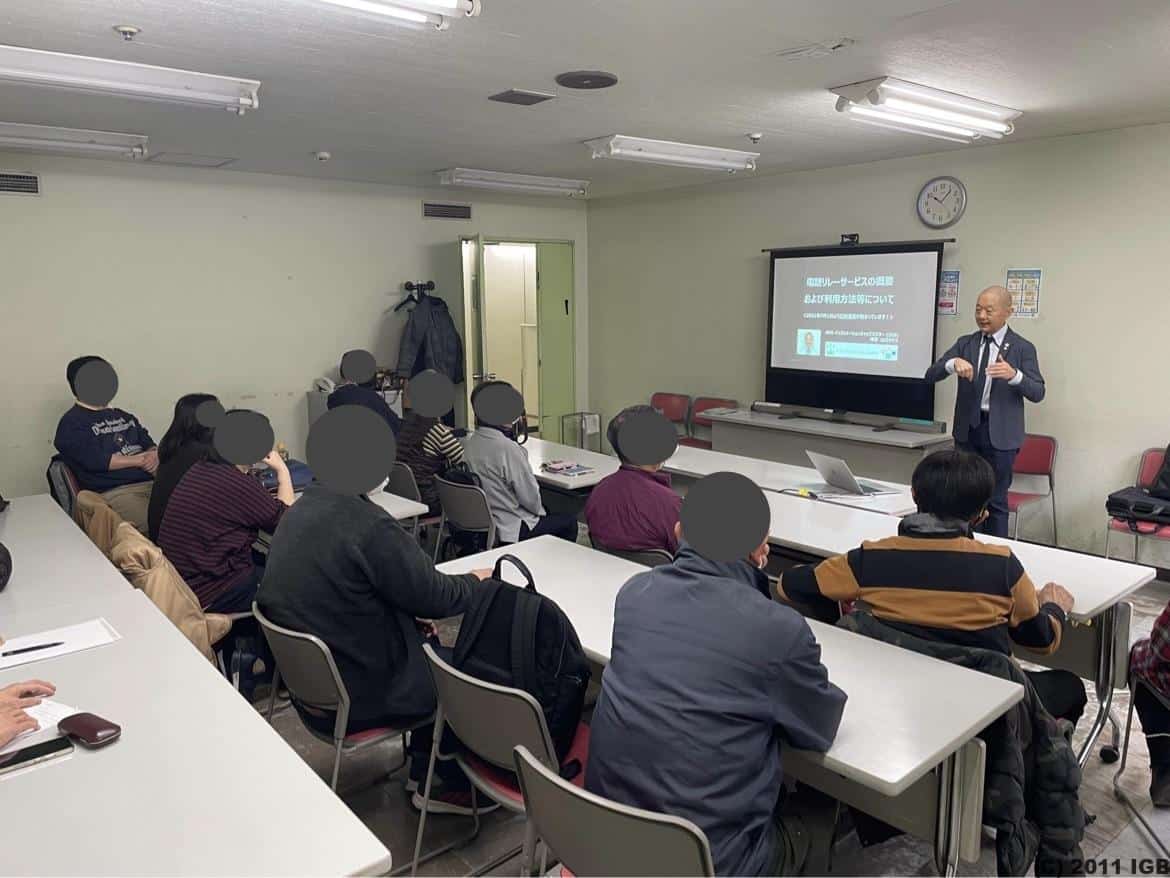 | 主要事業 | NPO インフォメーションギャップバスターは3つの事業を行っています。 (1) 啓発:一般市民にコミュニケーションバリア問題を認識してもらい、解決行動を促す 大学や市民講座などで一般市民の方を対象にしたコミュニケーションバリア問題のセミナーや講演を実施し、問題を広く認知してもらいます。 (2) 教育:コミュニケーションに困難を覚える当事者自身の困りごとなどを言語化する当事者研究を通して、相互理解を支援のキッカケづくりを行う 聴覚障害者には、聴力、話す言語、考える言語、手話の種類、話の理解の仕方などの多様性を分析することで、当事者性を探っています。 (3) 要望:コミュニケーションバリアフリー推進のために関係団体に働きかけ、解決を促す 行政や企業に対して、コミュニケーションバリアフリーを推進するための仕組み作りや改善を提案するためにさまざまな要望活動を行っています。 |